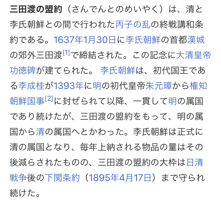 李氏朝鮮は1637年に明の属国から、清の属国へと鞍替えをしています。