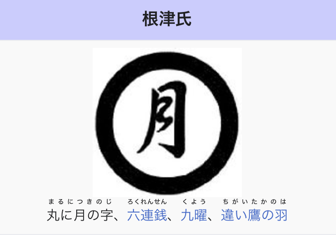根津氏の家紋は丸に月の字です。(九鬼家の九曜や真田家の六連銭もあり)