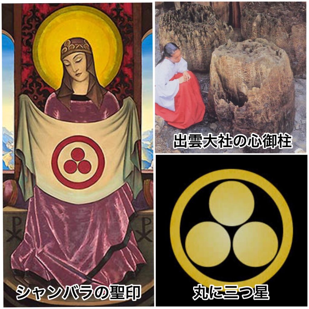 さらに出雲大社の心御柱は丸に三つ星で、これはシャンバラの聖印と同じ紋章になります。