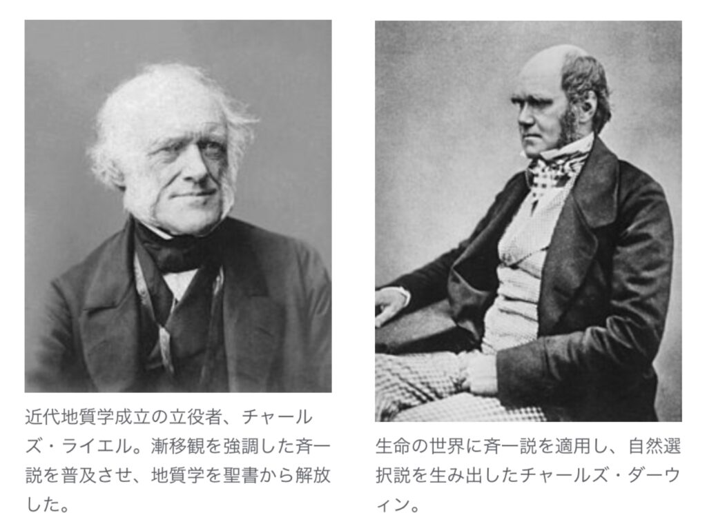 結果は過程の延長線上であるとする斉一説を提唱するライエルとダーウィンが現代地質学の定説を担っています。