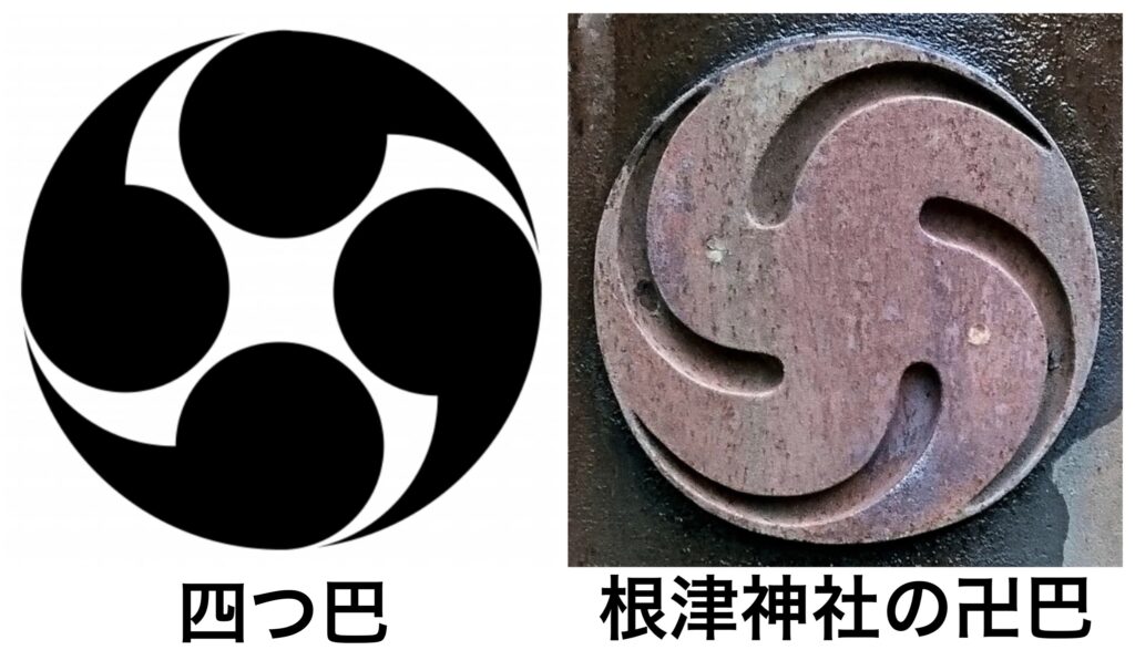 そして、ナチスの卍は傾いていますが根津神社の卍巴と類似しています。