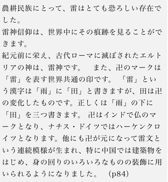 漢字の雷を見てみると「卍」のような形や「田」の字が見られます。
